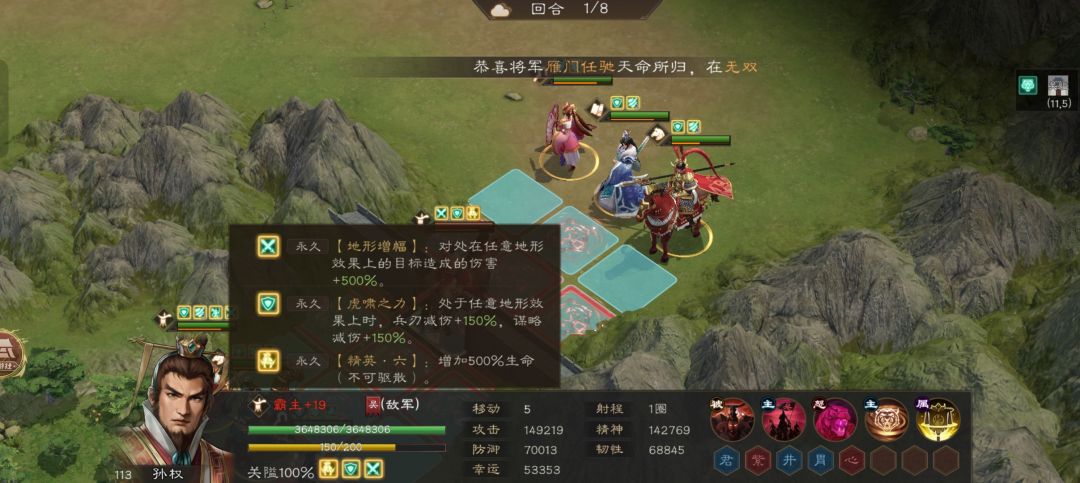 可以看到,孙权属性增伤减伤都巨高!