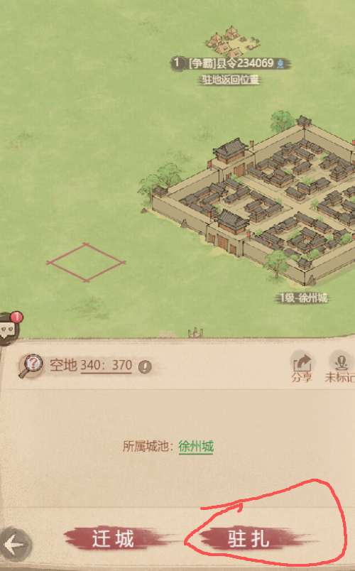 另外除了迁城打之外,还会有驻扎打的情况。很多新手玩家都搞不清楚什么是驻扎。现在给大家截图做一次完整操作。