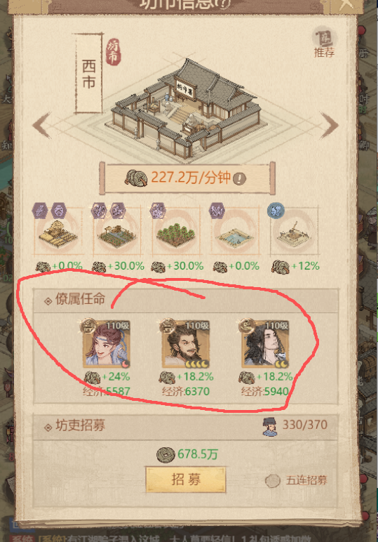 需要说的就是这个坊吏,每次官职升级,第一时间点满。早一分钟享受,就多一分钟收入。