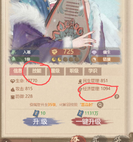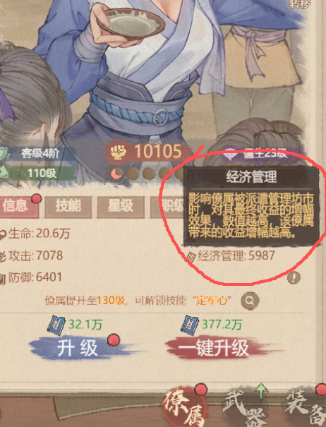 另外需要说的是,僚属的宝石,装备,都会增加僚属的经济属性