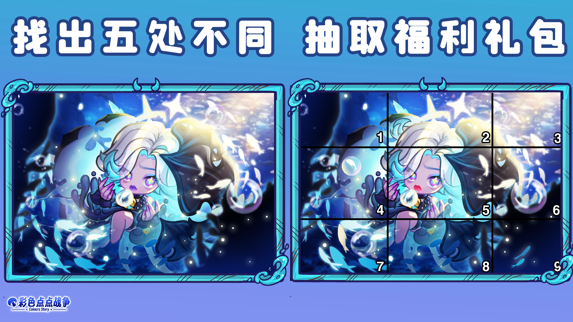各位召唤师在下方图片找到五处不同的地方,在评论区评论对应的区块序号即可参与抽奖!