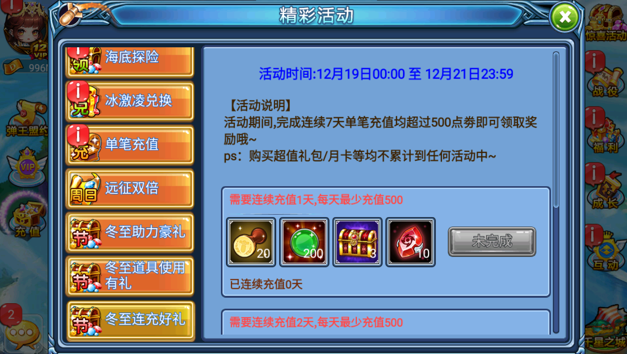ps:购买超值礼包/月卡等均不累计到任何活动中~