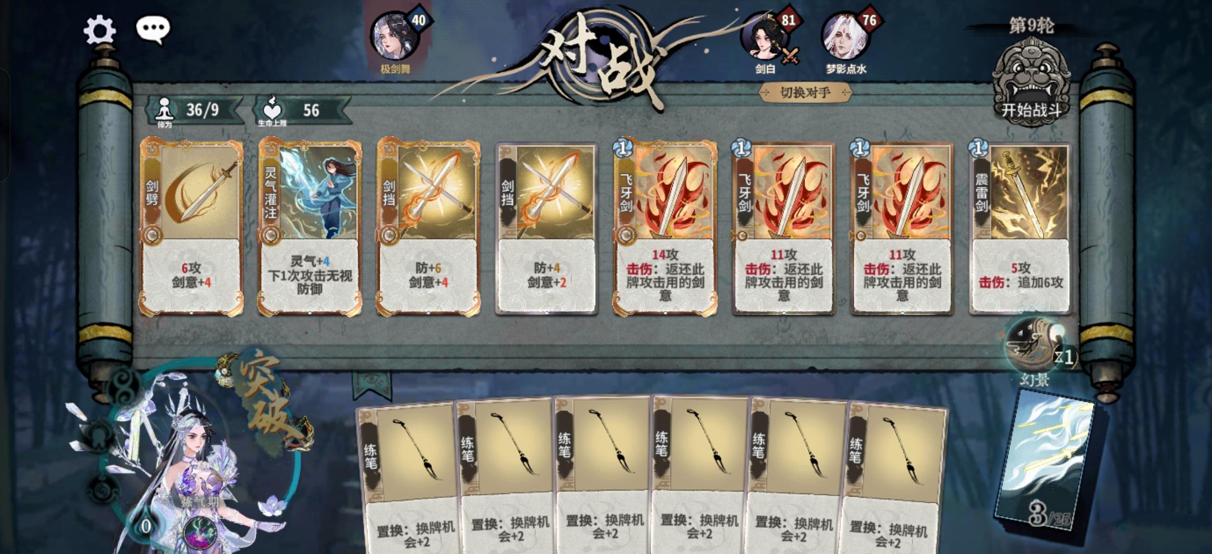 1.主要是刷剑意卡组,因为这是化神期前的主要卡组