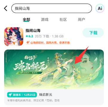 第一步:在TapTap中搜索《指间山海》,点击下方的图片即可进入“预约新版本”界面。
