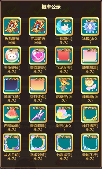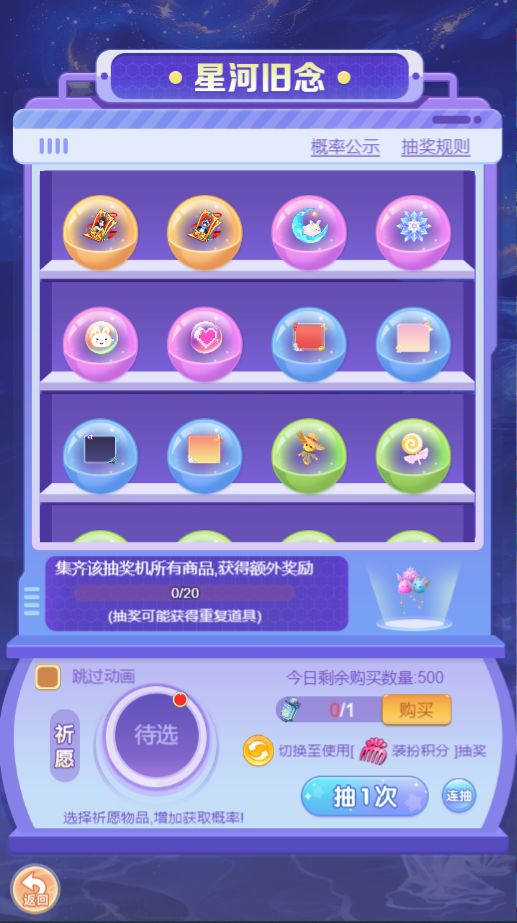 每台抽奖机都有不同的主题,对应不同主题的外观物品。