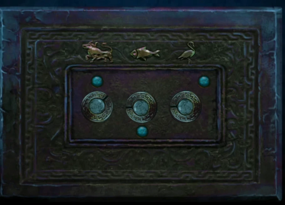 这里机关的调整是从圆点为起始点,所以三个的1是不一样的,圆点是1转动90度是3,也就是转动45度就是2了,所以牛朝向从圆点开始的第2个也就是右上角,鱼朝向从下面开始的第3个也就是左侧,仙鹤朝向从右上角开始的第6个也就是左侧,调整好如下图。