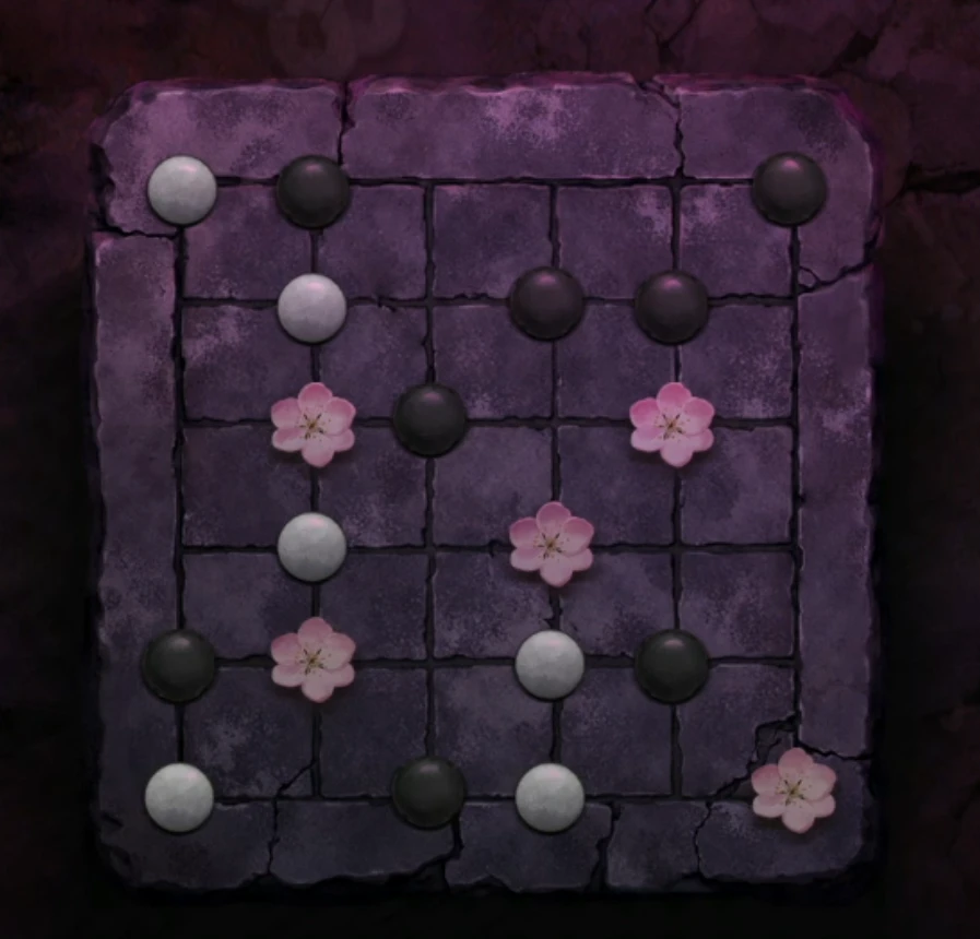 进入密室之后先拿走右边椅子上的供果,然后查看左边的箱子,上面是颜色提示黑红白,查看一下中间的棋盘加上桃花刚好是这三种颜色,于是我们数一下【黑8桃花5白6】,所以箱子密码为【856】调整一下如下图打开箱子获得【唧筒】,差点以为我要拾遗了!