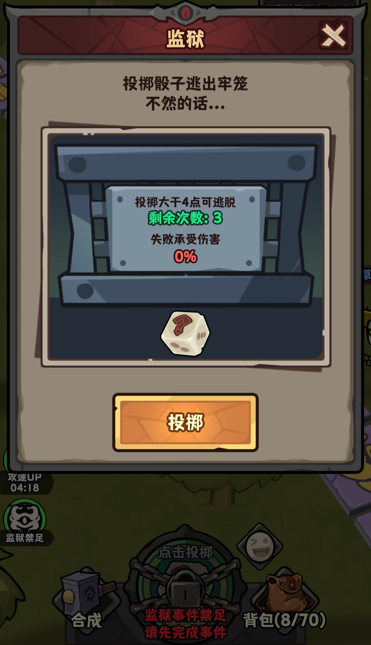 有三次投骰子的机会,投到5 6就可以拿奖励,三次都没投到则会被禁锢一会并扣除20%血量
