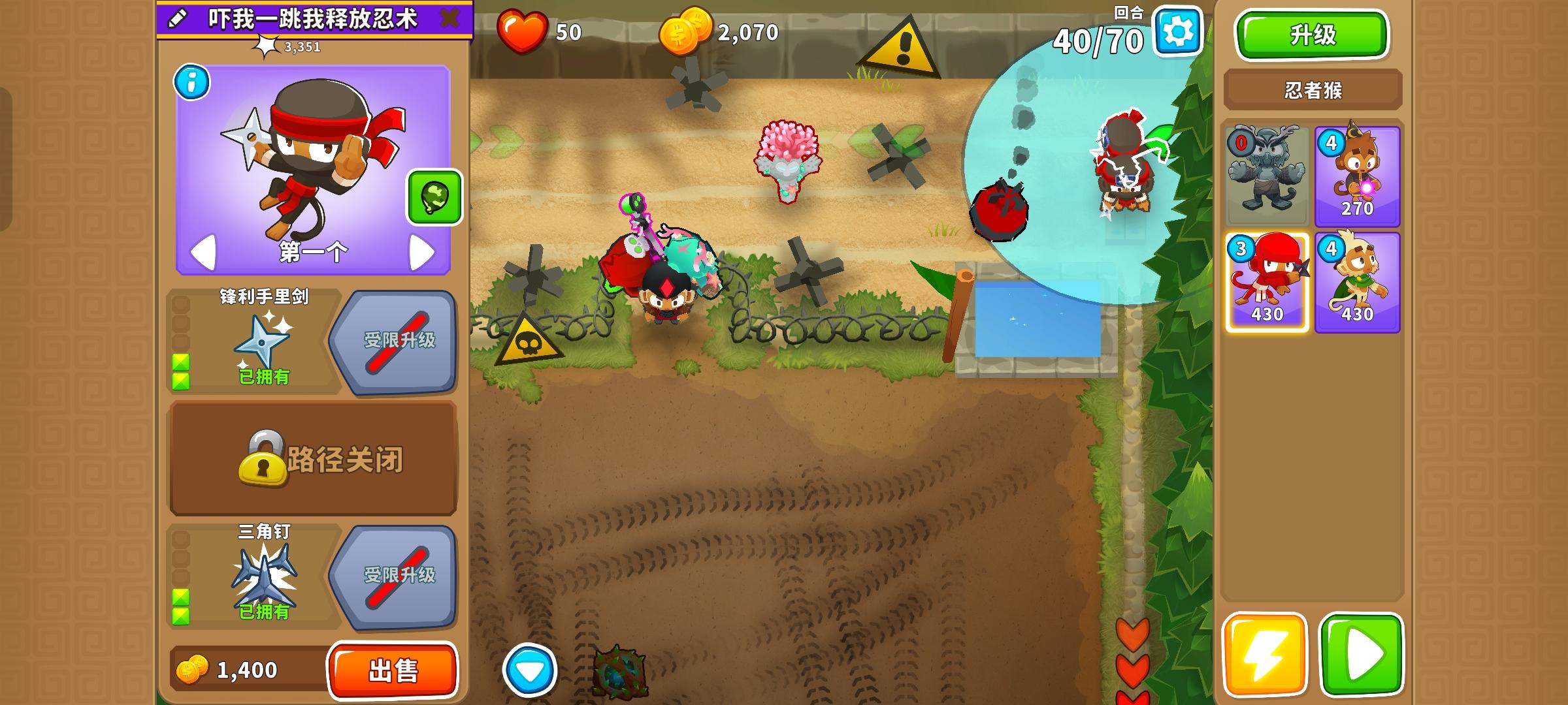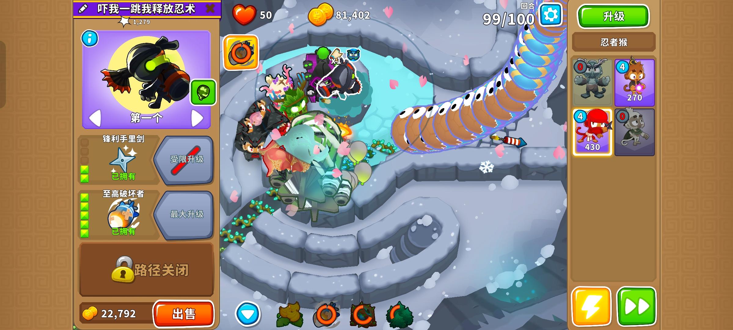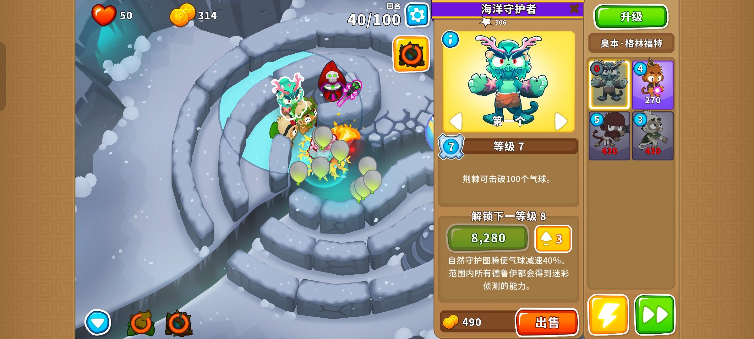 岛3:仍然是熟悉的方法,区别在于开局可以直接把忍者升到201,并且法师猴可以升至025。