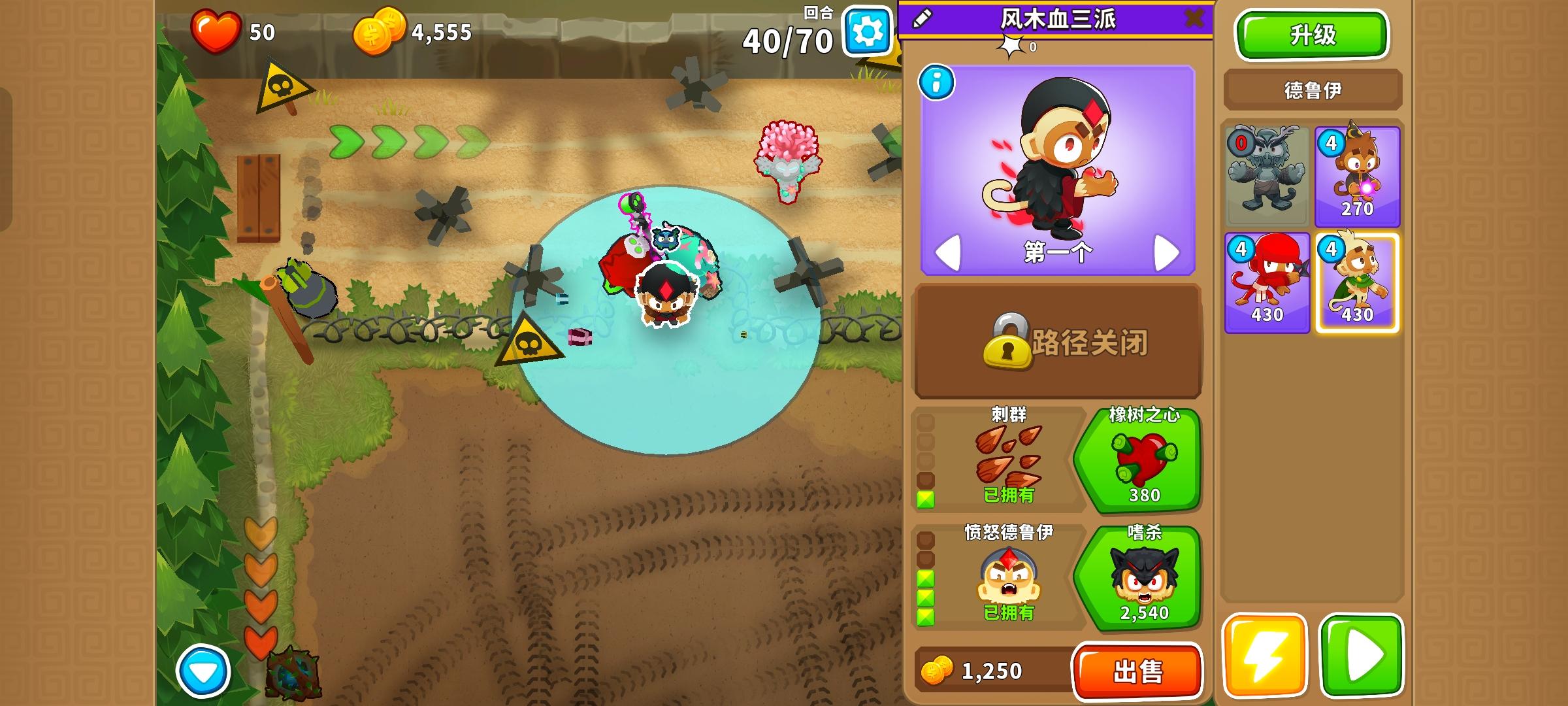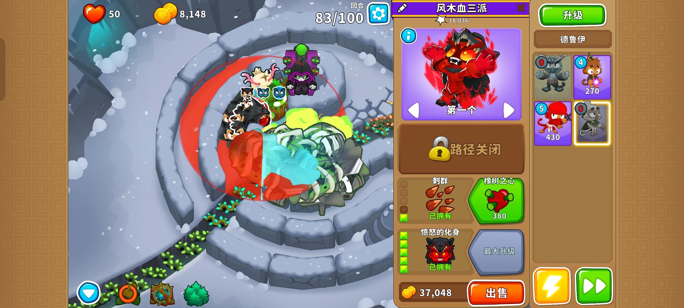 岛5:开局清除左上角的障碍,并在图上位置放下023法师猴,012和120德鲁伊以及英雄。之后升级至024法师猴和140德鲁伊,德鲁伊的技能亮了就用!这次你可以累计放下很多英雄技能来对抗MOAB。钱够了就升级法师猴至025,再把德鲁伊升级至250,然后就升级012德鲁伊至015并配上所有004德鲁伊的增益效果。最后别忘了频繁使用英雄的两个技能和中路忍者猴,在图上这个位置放下250忍者猴,在第99回合开始后使用忍者的技能,这样刚刚好能减少FDDT和BAD的血量。就能轻松完成征程!#今天游戏圈发生了啥 #单机游戏 #气球塔防6 #游戏攻略 #游戏日常