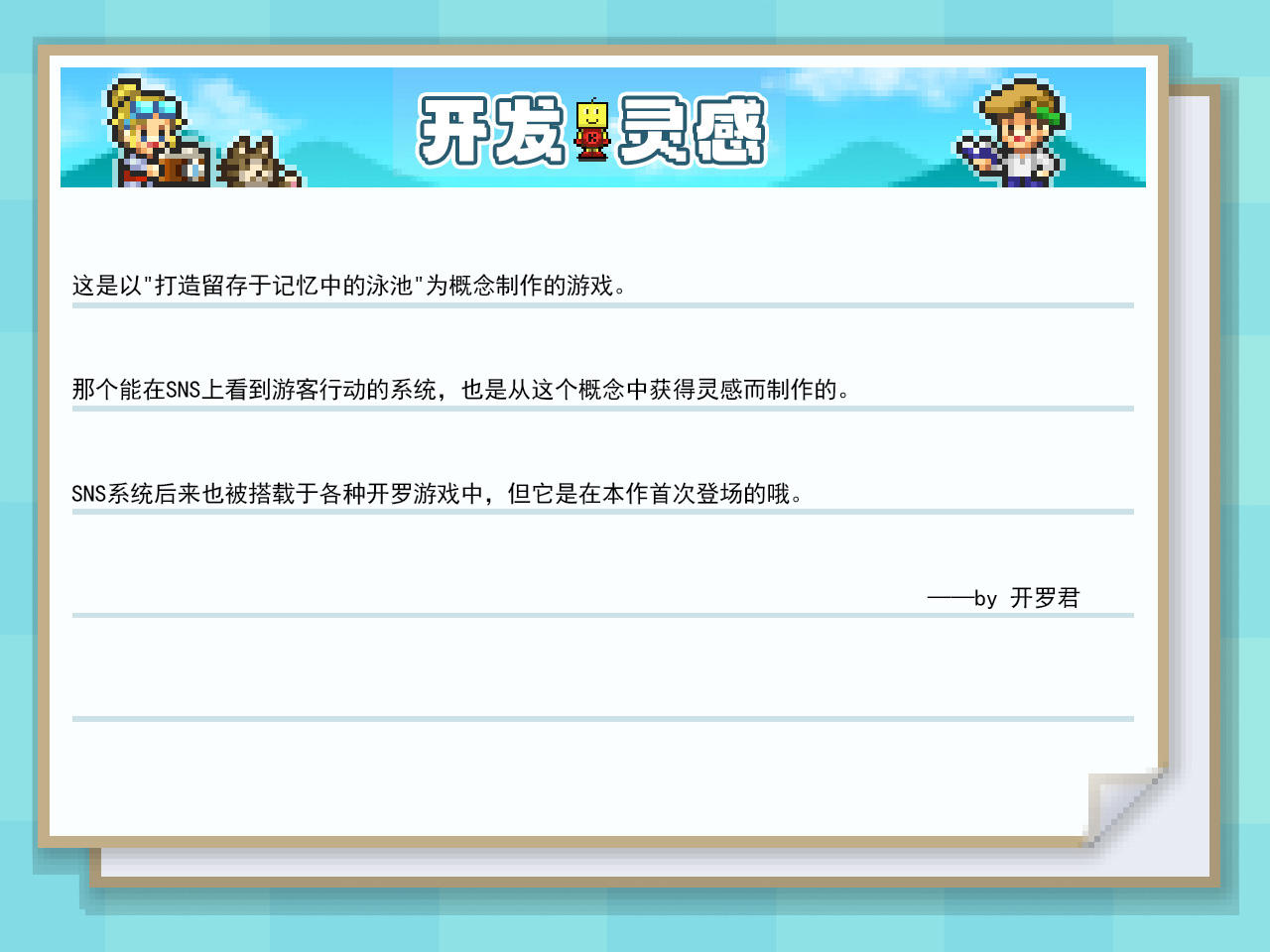 在游戏里,你将成为水上乐园的园长,以打造最受欢迎的度假圣地为目标,扩建泳池,建造各种娱乐设施和配套设备,满足顾客的愿望,调配不同颜色的池水吸引顾客游玩,让一年四季都能宾客满门!