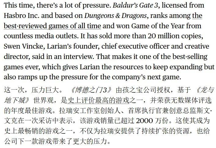 2025年12月中旬,《博德之门3》开发商拉瑞安工作室创始人兼CEO斯温·温克在接受彭博社采访时披露,游戏全球累计销量已突破2000万份,2024年末为1500万份,2025年新增500万份,并首次公开表示:“如果没有腾讯的支持,拉瑞安不可能开发出《博德之门3》这样的作品”这一表态揭示了腾讯作为少数股权投资者对拉瑞安的关键作用——提供资金保障的同时绝不干预创作,为工作室的“匠心打磨”提供了坚实基础![[TapTap表情|TapFamilyxdoro2_粉狗比心]](https://img.tapimg.com/market/images/101c7e3200596fe8e03765080b467fb8.gif)