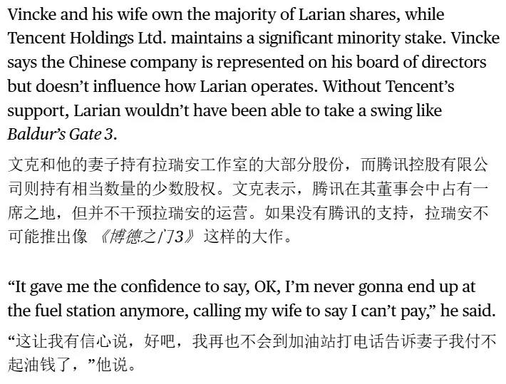 据悉,博德之门CEO温克多次提及腾讯投资的独特模式腾讯持有拉瑞安约30%的少数股权,但仅参与董事会而不干预运营,温克坦言:“这让我再也不用在加油站打电话给妻子说付不起账单了。”看来腾讯在国外还真就是天使投资人了![[TapTap表情|TapFamilyxdoro2_粉狗发射]](https://img.tapimg.com/market/images/934f58613a089b2e214eb0e0638bbbad.gif)
