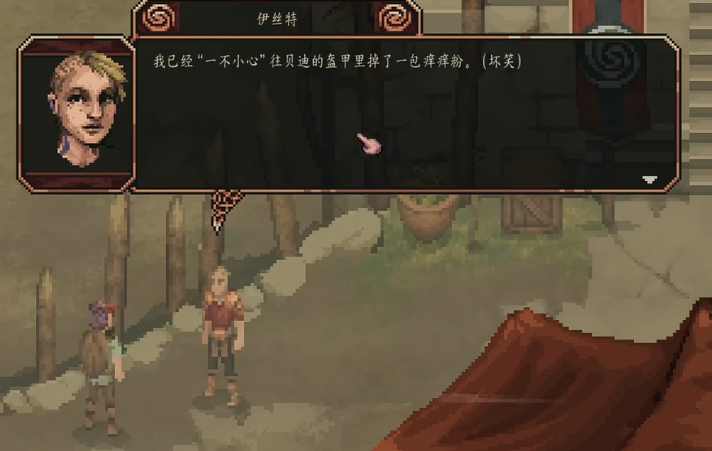 而在另一个任务中,玩家接到了一个帮助竞技场管理员呼叫格拉和贝迪来准时参与格斗的任务,但你刚准备出发的时候可以在旁边接到另一个相关任务,那个人和你说因为格拉输了好几次了所以现在赔率很高,让你想办法搞个黑幕一起赚大钱,还给你出了几个主意比如在贝迪盔甲里放痒痒粉。这时你去找格拉就可以得知他最近连输好几次的原因是他的本命武器拦路虎丢了,玩家可以帮他在附近的土匪营地寻回拦路虎,但这还不足以让他打赢贝迪,这时玩家去和贝迪对话可以得知他需要拿回在铁匠那打磨的武器才能战斗,这时玩家可以使坏让铁匠不给他磨,直接拿钝的武器给贝迪。如果觉得还不够保险,玩家可以偷偷去贝迪的帐篷,可以偷到一封女人写给贝迪约会的情书,这时你可以去找贝迪让他觉得自己被绿了,搞他心态,在多重影响多重保险下,黑幕就妥妥的了,这时你还可以把黑幕的事情告诉他,他还会觉得你仗义去尤金那推荐你,最后玩家可以狠狠的买格拉赢大赚一笔,这里面一环扣一环的细节真是让人过瘾。