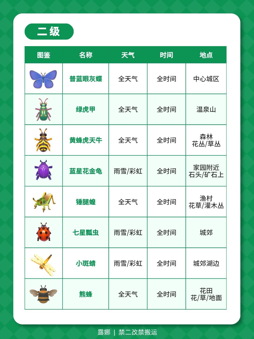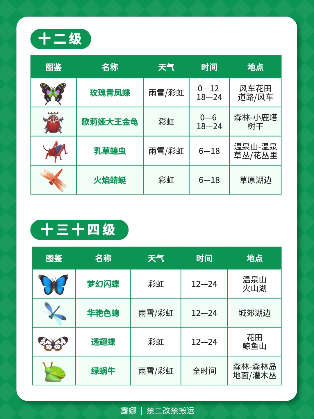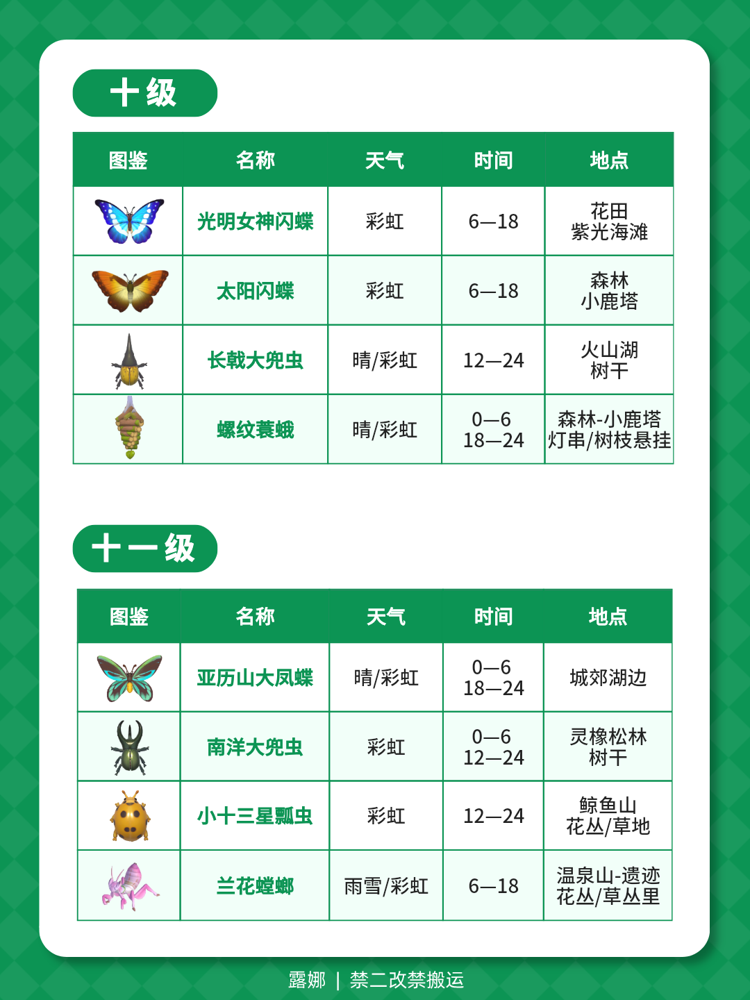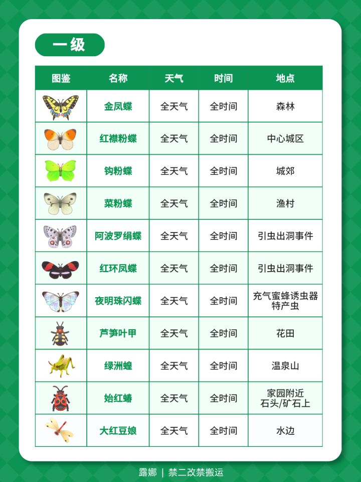 1-14级捕虫图鉴攻略 天气时间地点(全)