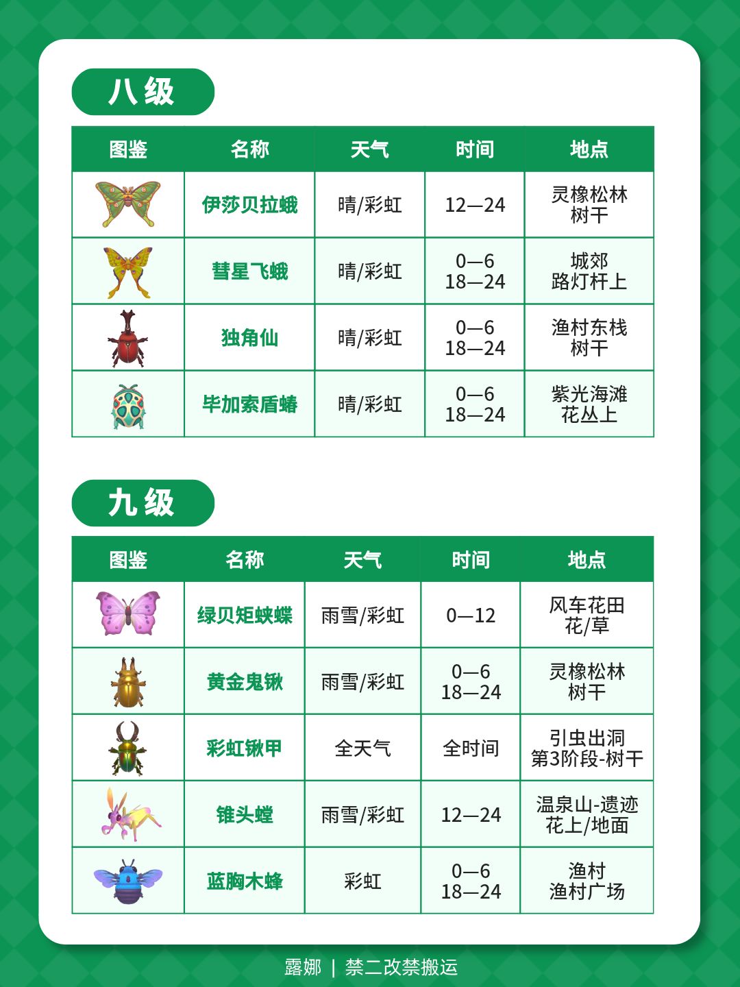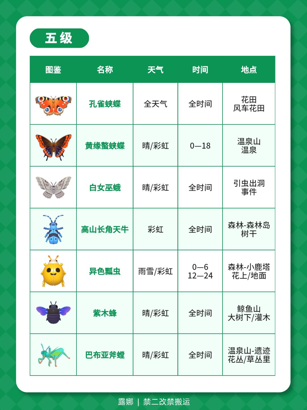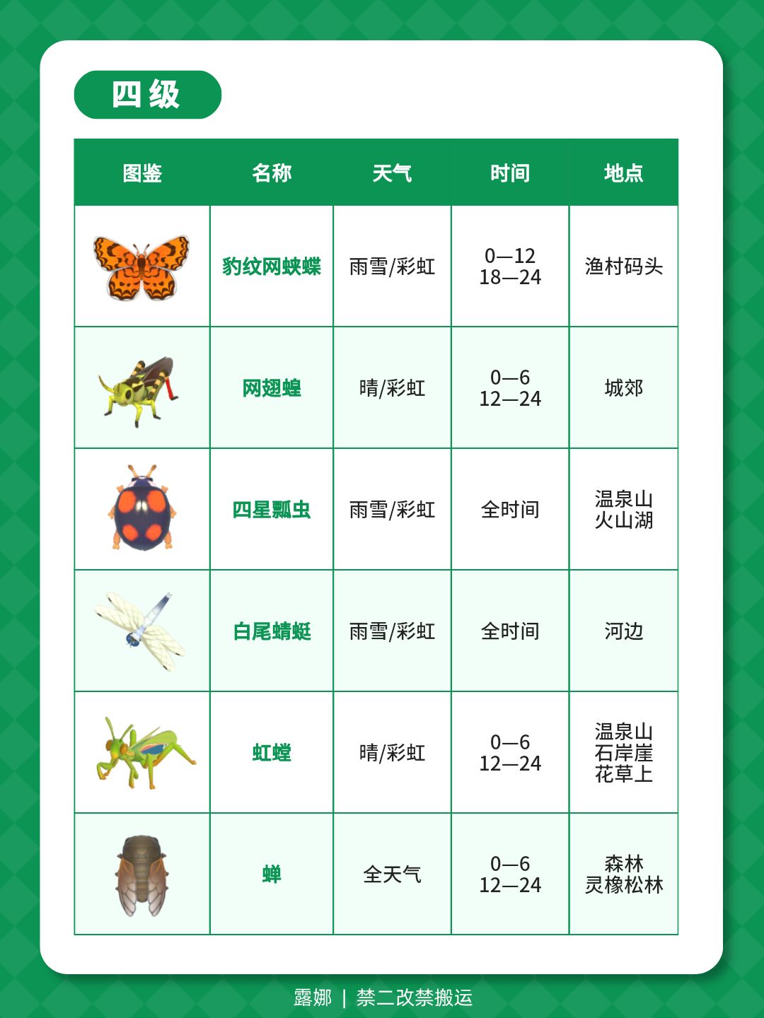 1-14级捕虫图鉴攻略 天气时间地点(全)