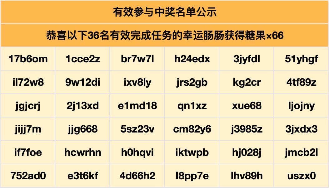 恭喜肠肠获得奖励~糖果奖励将会在14个工作日内发放到邮箱,请注意查收!