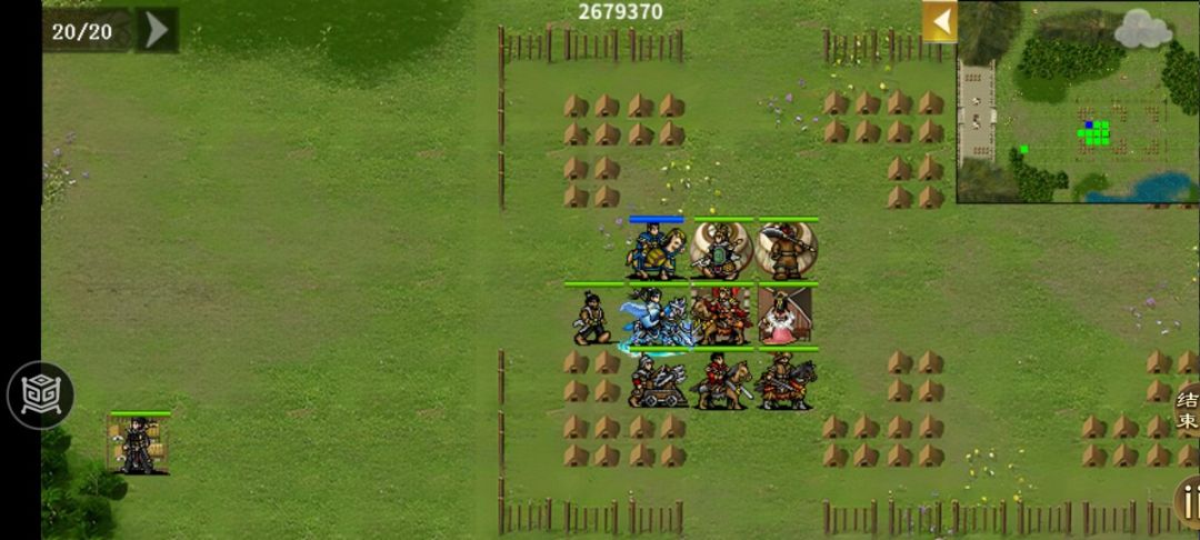 选2开局我军王贵、汤怀、张显前往埋伏,暂时消失。我军先消灭何进部队。第二回合,王贵三人在右上角出战。