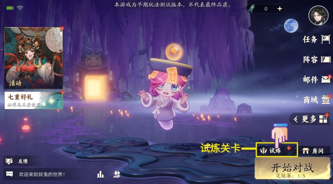 本次测试,我们还在游戏内为使君大人们新增了“试炼关卡”,通过模拟实战,手把手教使君大人们理解妖鬼世界的势力机制与游戏内的关键词搭配技巧,助使君从入门到精通,使君大人们不妨在实战前先去试炼一番!