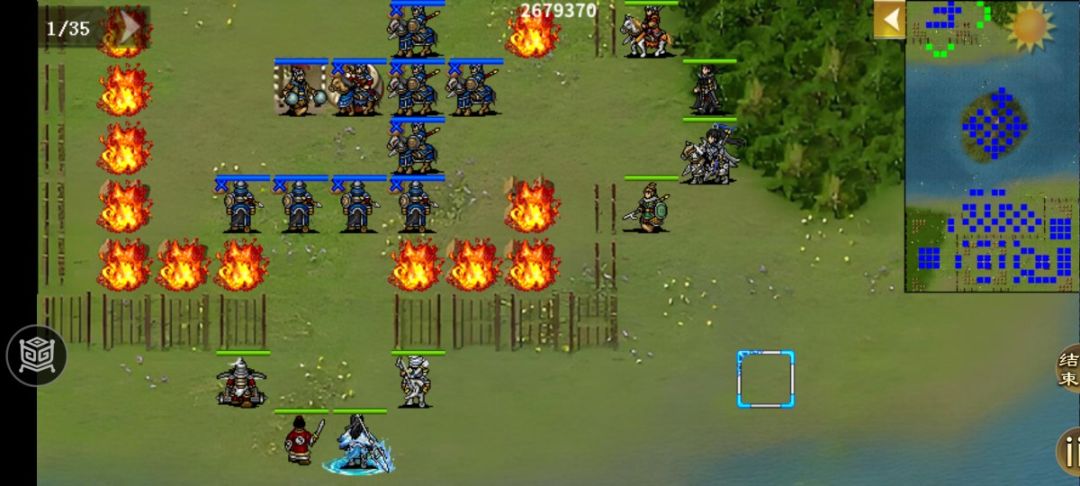※本关逃课,肃清外围引导韩世忠部往大营打,他们当先锋我们少打甚至不打,提前站位或打掉栅栏边敌兵,否则韩世忠、梁红玉过去打,最后阶段围着曹成,不让韩世忠接触他,左上敌营派人练甲,最后回合韩世忠对话曹成过关