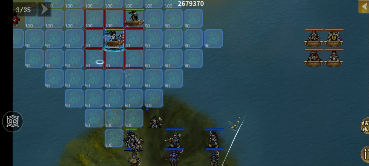 ※本人开局施全给岳银瓶加速往岛上赶,董先给岳飞挂加速原地单挑,何元庆会下来打余化龙。二回合诸葛英三人干掉何元庆,需利用董先协攻,岳飞往岛上赶,岳银瓶上岛反击,岛上低于20人三回合韩世忠出战