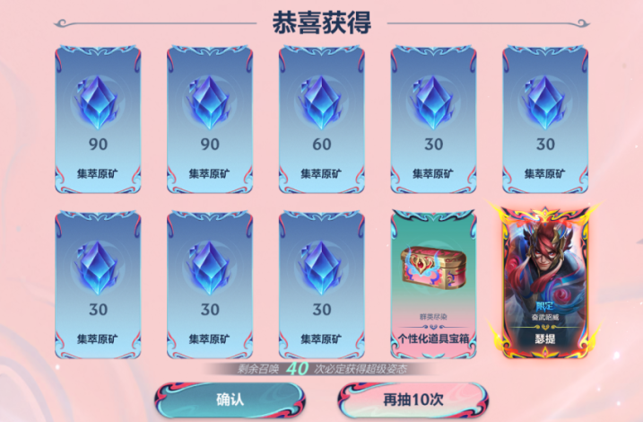 每150次召唤必定获取1个超级姿态-台下十年功。