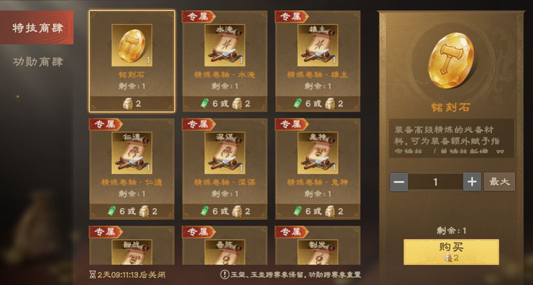 当前铭刻石仅可通过赛季商店获得,诸位主公视自身阵容需求谨慎使用。