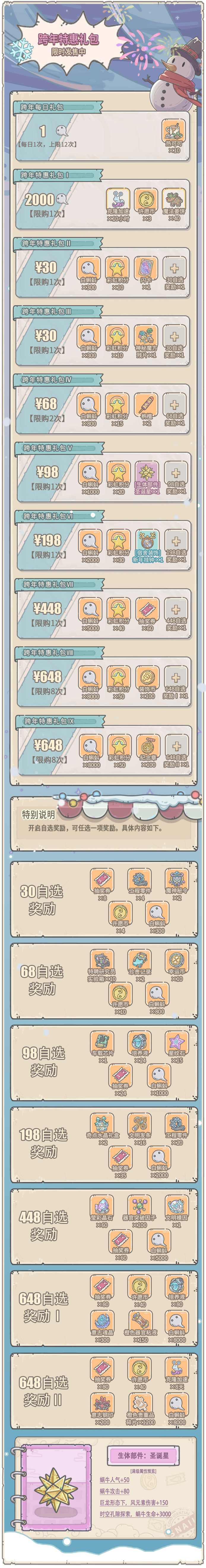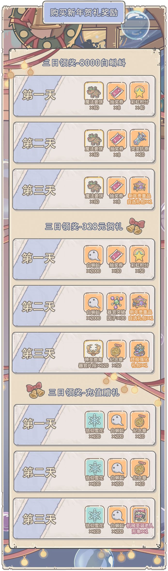 1.活动期间,可购买白蝌蚪新年贺礼,连续3天领取奖励