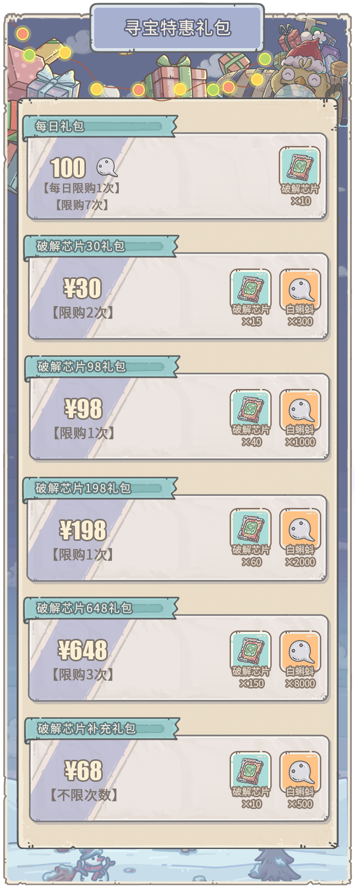 - 寻宝礼包购买获得