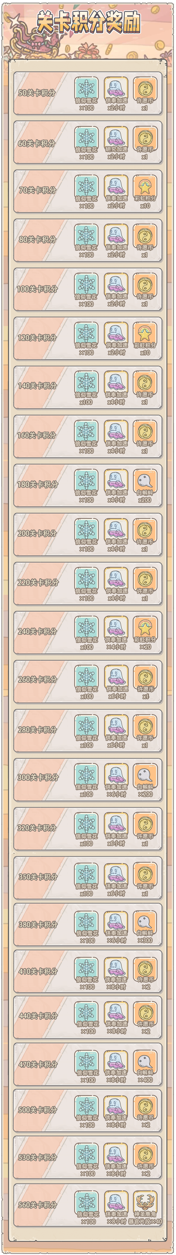 4.每通过1个关卡,获得10积分,累计积分可领取回馈奖励
