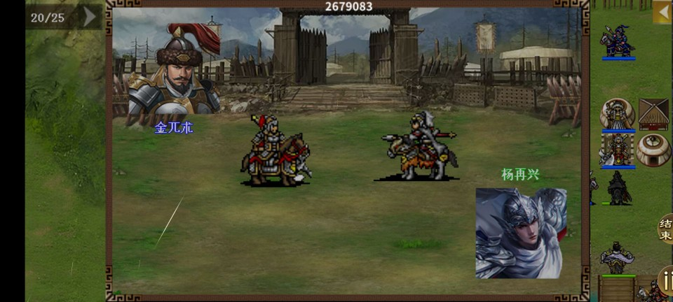 如果小商河杨再兴战死,曹宁会和王贵部一起出现,10.11号位置就不会有人出现了,金兀术不往下跑,曹宁单挑金兀术会再次发生亡灵附体。杨再兴未战死,为防金兀术跑掉,可以岳飞走下路帮助堵人。本关可以不打上面一堆敌军,击退金兀术过关,损失瘊子甲一挂,不建议。