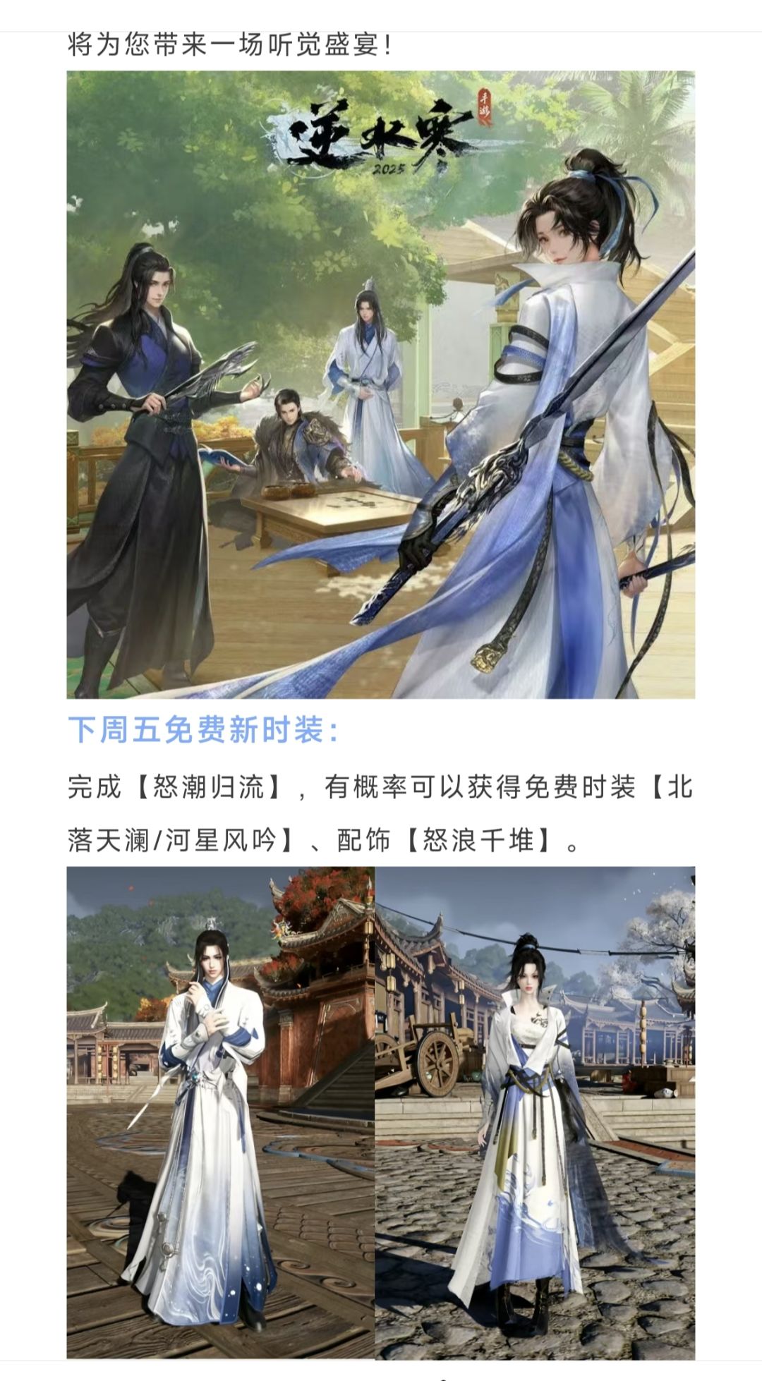 逆水寒手游下周五免费新时装,转盘发型返场规则公布,新副本【怒潮归流】!