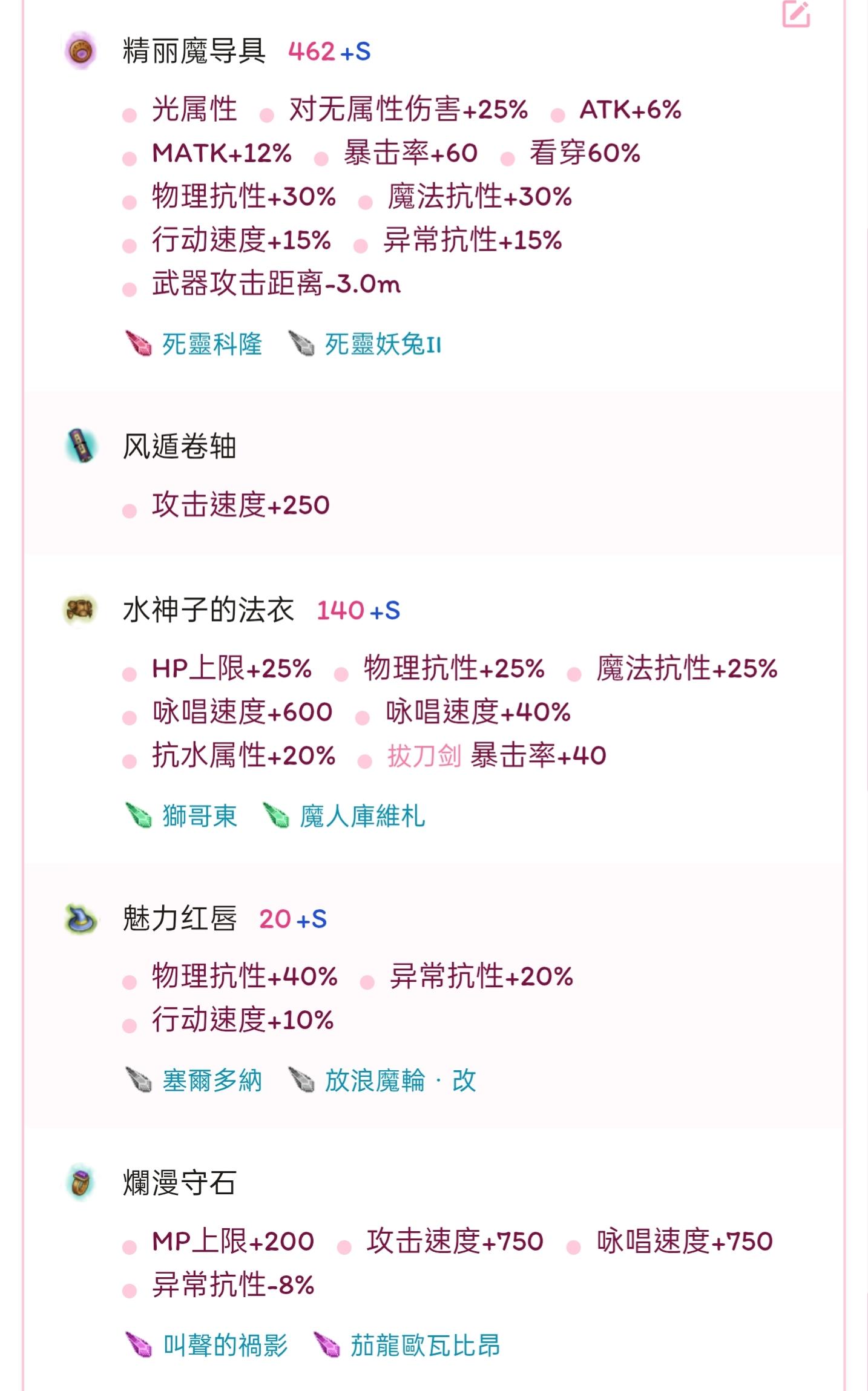 下面将以一套标准配置的强化点分配作为参考,仅确保在装备王石方面尽可能的做到了最优解(近三周花费大量时间反复替换尝试了各种配置才得出的最终方案)。若有诸如“把这个换成XX会不会更好”、“我手里有个现成的XX是不是也能拿来用”之类的想法,那么还请麻烦自行尝试,或托他人协助调配。要求点:无结界双万速、百异抗、双抗不可过低、装备包含时装共计-30%血量词条、算上-30%血量词条后最好仍有一万六血量。