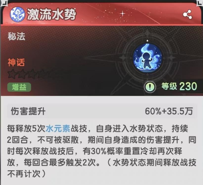 ①:这个技能有点意思,可以把它当做小核心技了,30%的概率再次释放技能,还能触发两次!