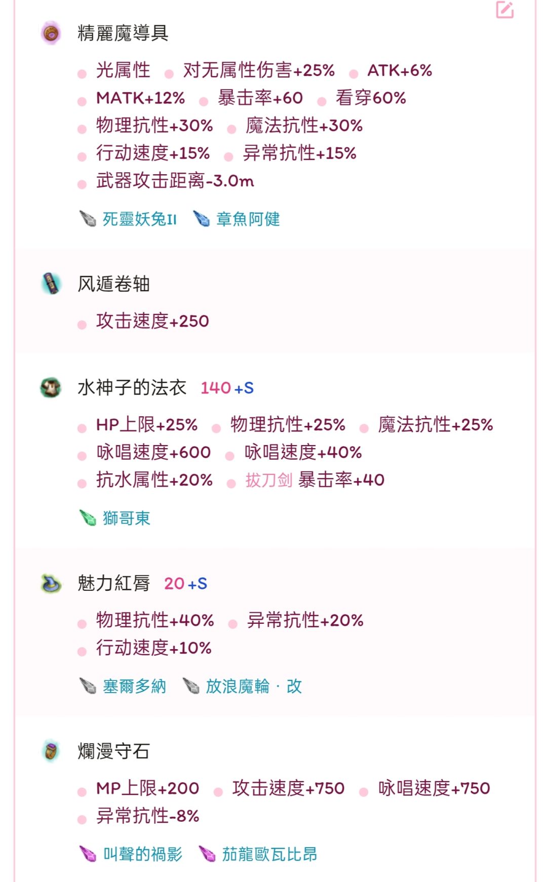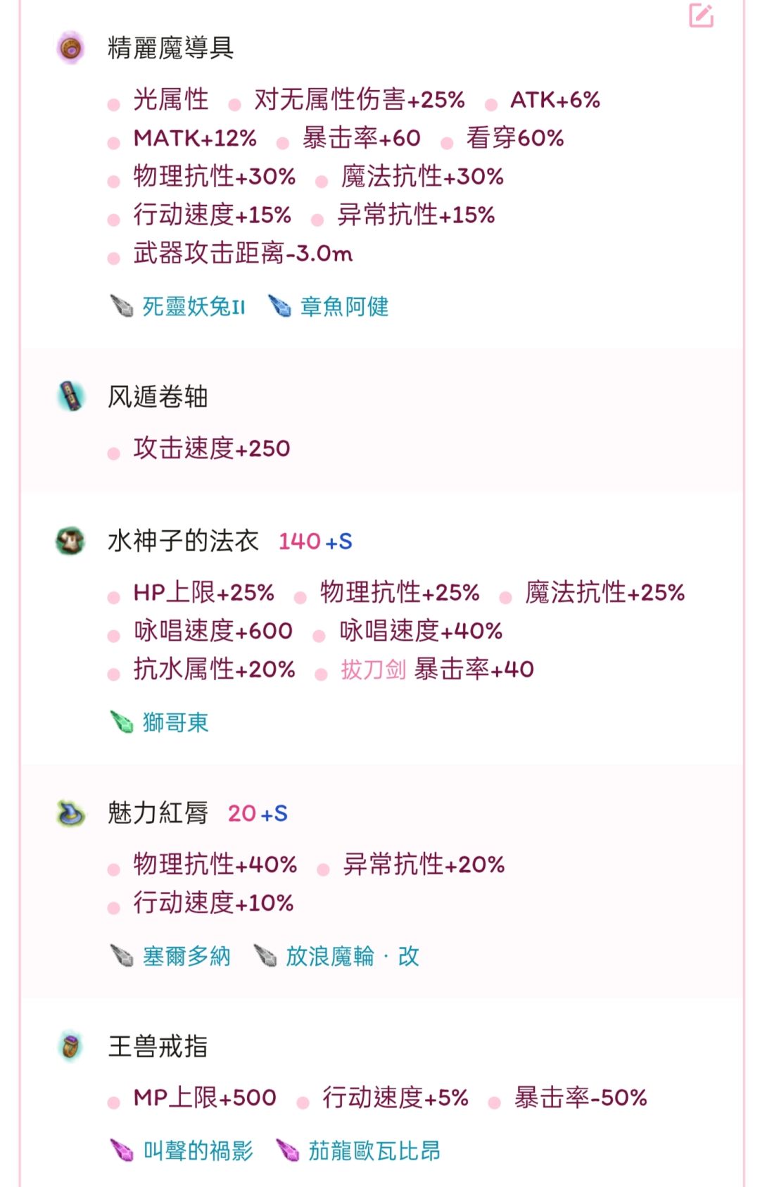 七孔配置因为舍弃死灵科隆+魔人库维扎的组合,蓝量会严重溢出639点,再吃一个魔力药IV就能去掉蓝量料理,若可以的话推荐换成加仇。