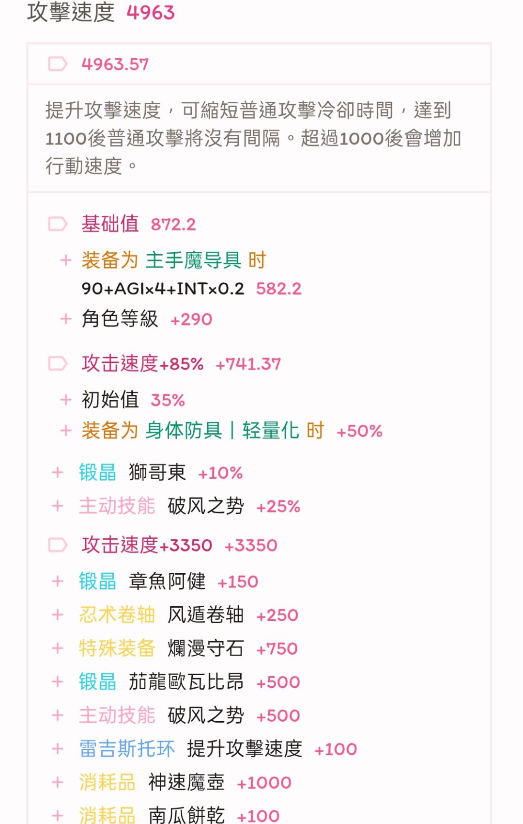 4963攻速,算上额外补充的28%行速词条,刚好达成万速(4963+28*180=10003)。