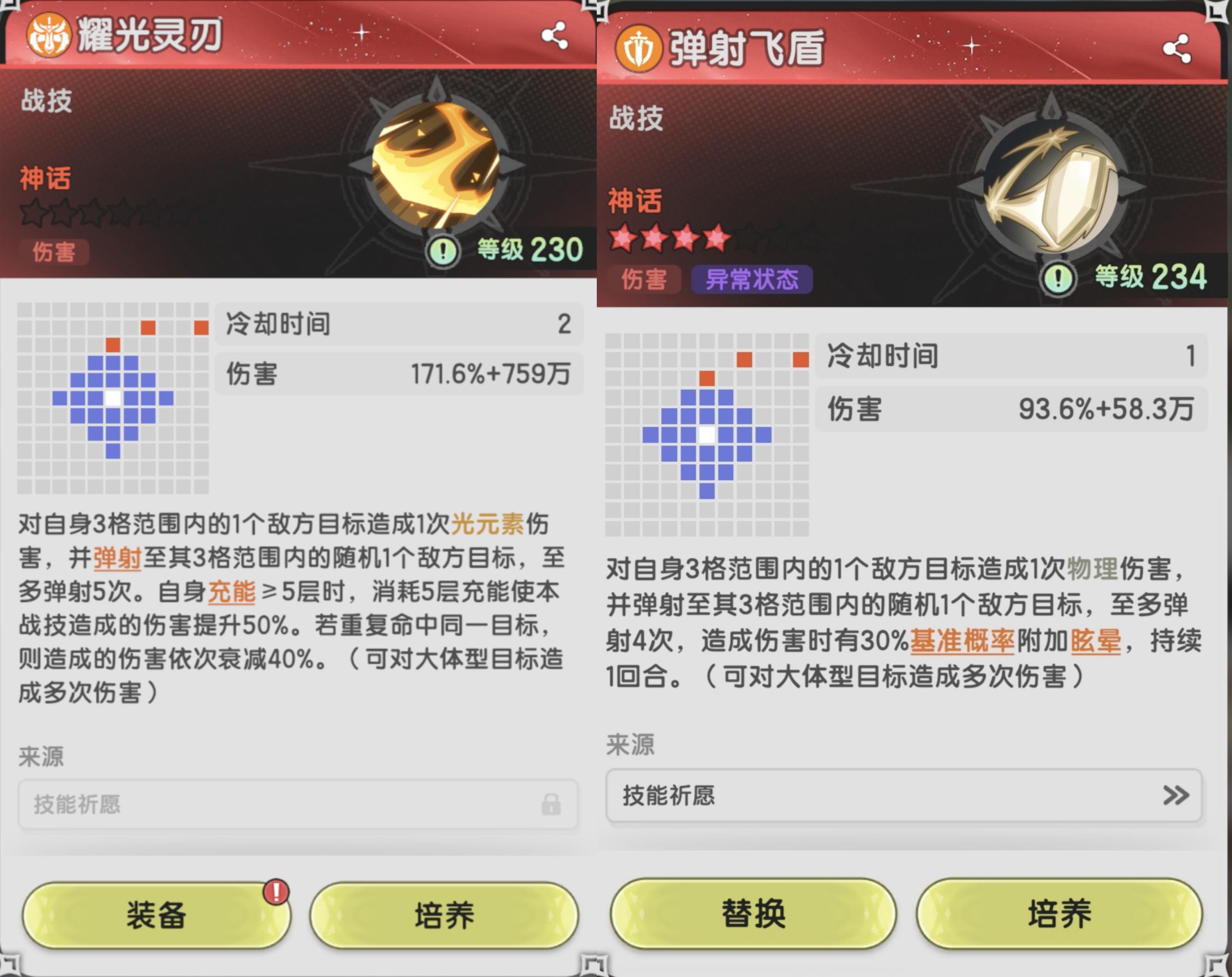 补充:自身回合结束时才能获得2层充能,在第一次释放耀光灵刃(换皮飞盾)时也就是第3回合期间,耀光灵刃无法消耗充能进行增伤,因为这时候才4层充能