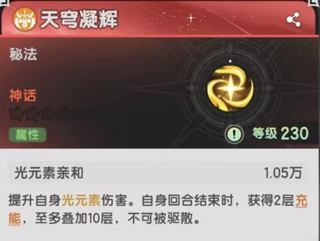 3.天穹凝辉:做为一个六转光亲和秘法,效果却只能与一个技能(换皮的光飞盾)产生联动,我真服了但凡这个充能效果适用范围广一点,光骑都不至于像现在这样散装。评价为不如四转的寒芒。