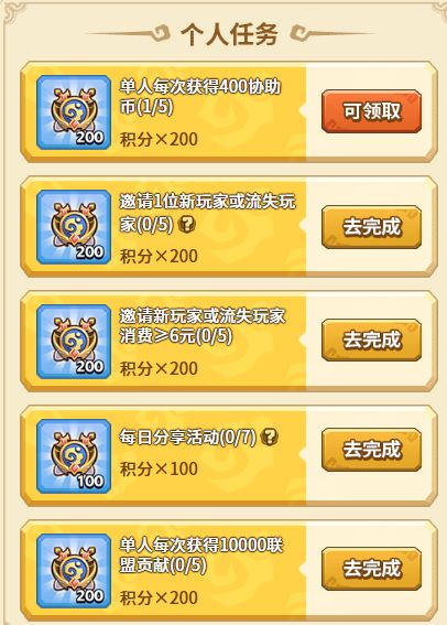 【组队里程碑】则需要勇者们先完成组队(满编5人队),然后完成团体任务,根据队伍总积分获得相应奖励。