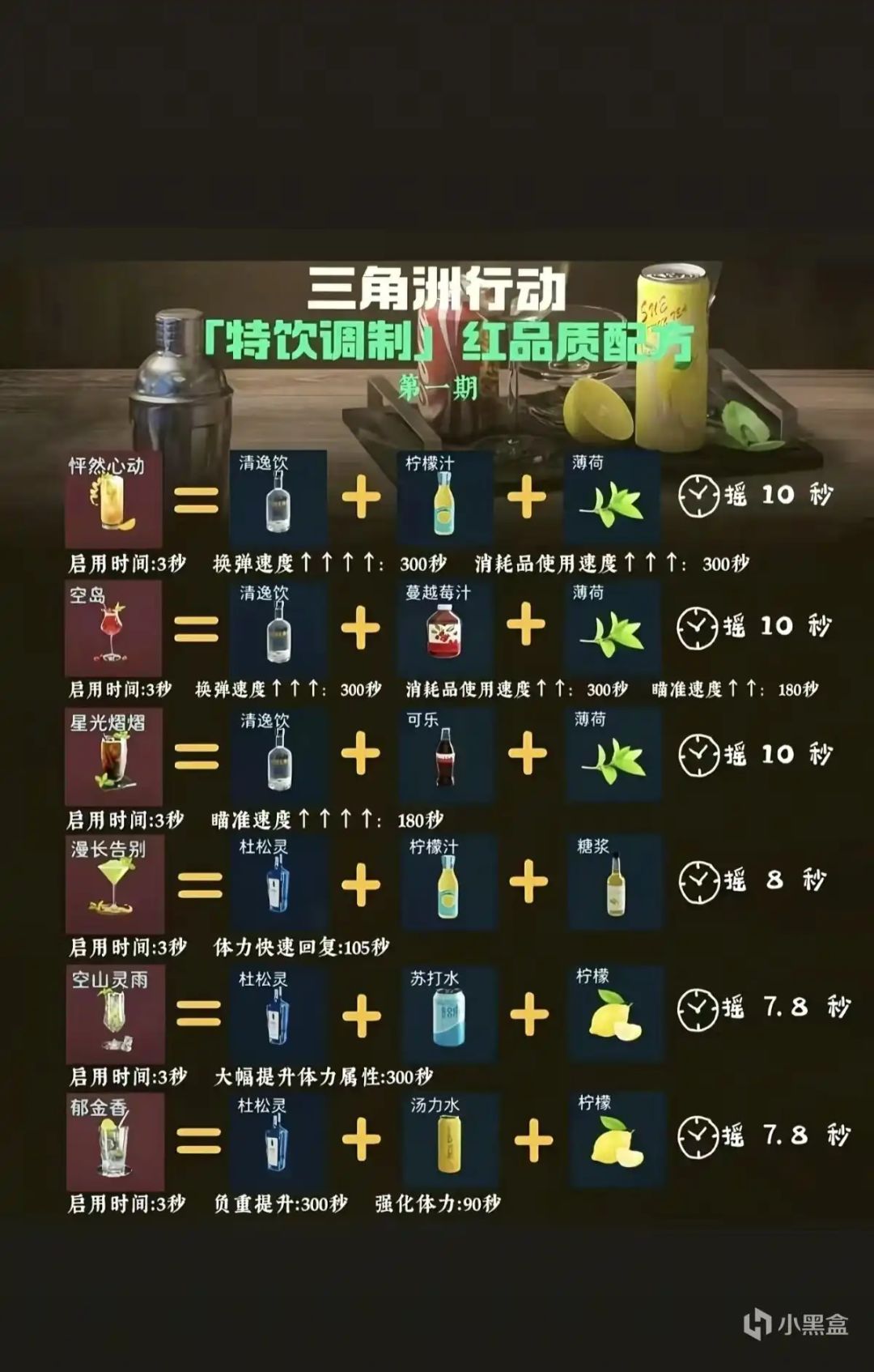 在2025.12.12-2026.1.8号,三角洲推出了一个8+1的活动——特饮调制。有很多小伙伴不知道如何下手,或不知道配方而白白浪费掉了有限的资源。 这边给大家整理了一些红配方的方案,供大家参考。