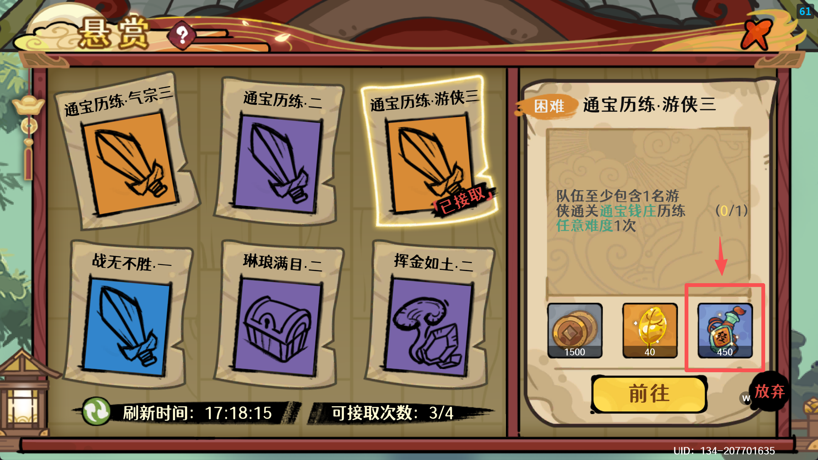 每日4次悬赏任务