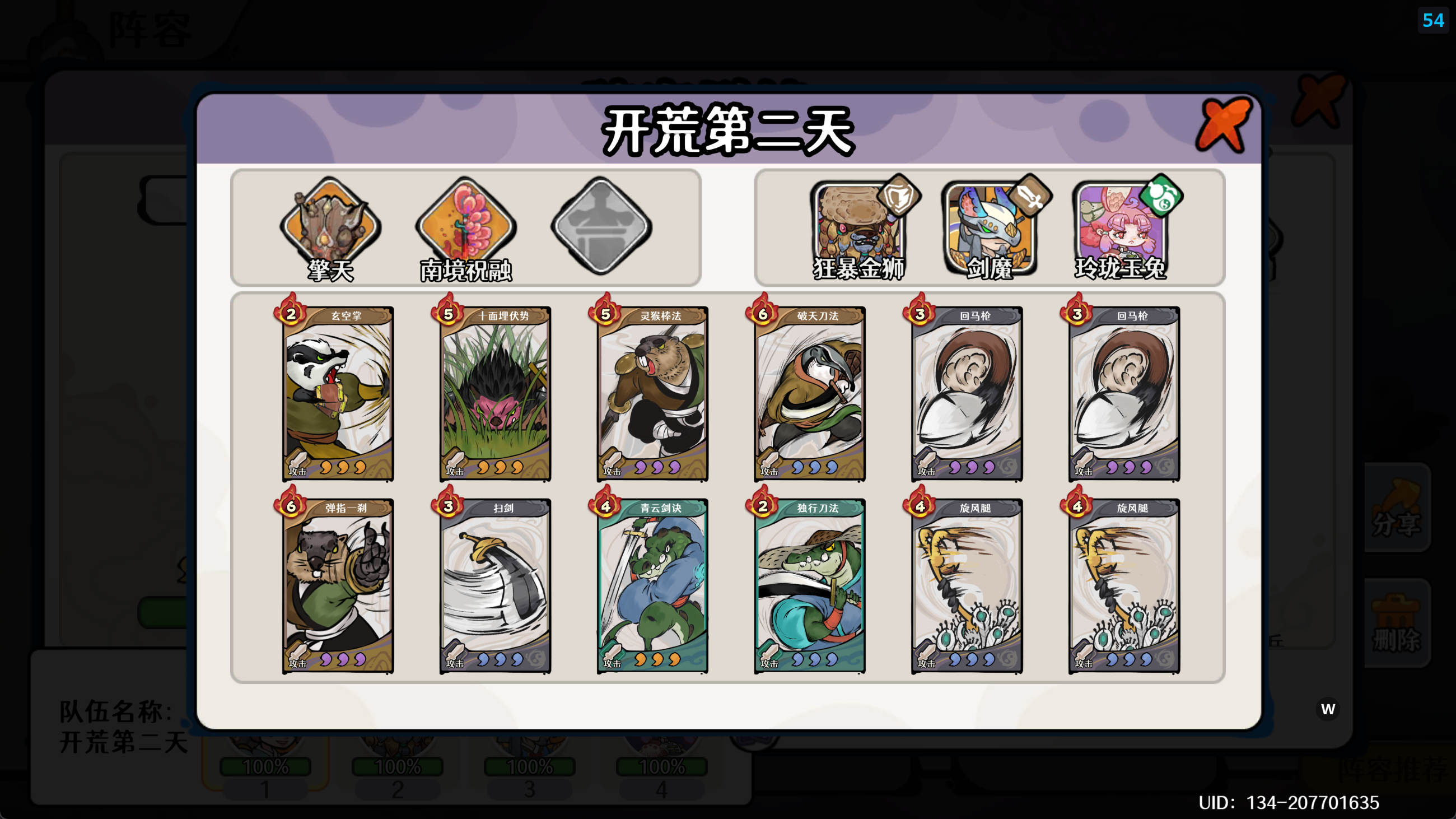 第二天依然没有特别的体力规划,我只买第一次50金叶的体力。注意账号体力上限会随着等级的提升而增加,每升一级增加5点体力上限。前期我们的体力上限比较低比较容易溢出,建议及时清体力。最省事儿的办法就是【通宝钱庄】【天录书局】一键扫荡当前最高难度,轻轻松松获取前期关键道具。