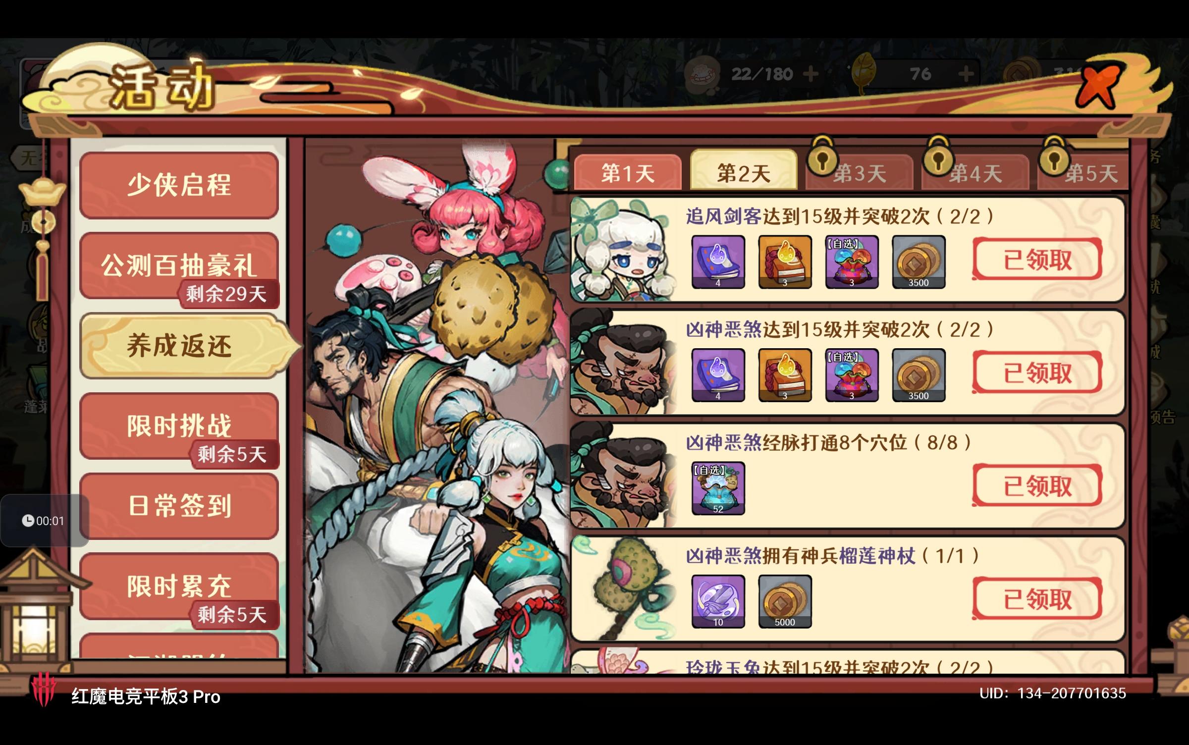 三、养成返还任务
