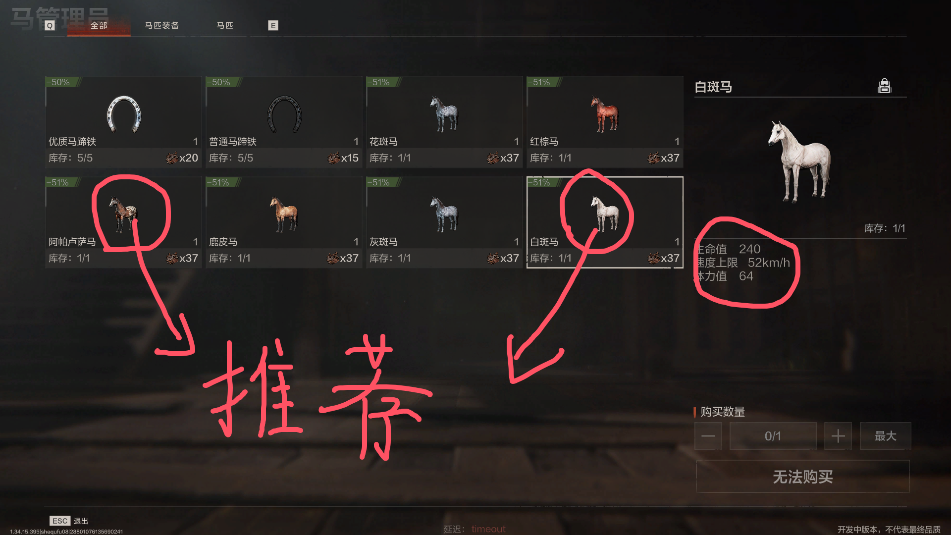 一个好的马匹能帮助更快的跑图,up做了两个推荐帮助兄弟们更好的选择,白斑马是失控进化目前最快的马匹可以配合马铁使用。
