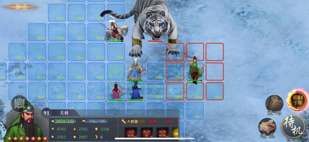 4、本方阵容防御最高的武将穿兽面铠扛白虎大招,同时注意其他人的伤害不要高于穿兽面铠的武将。