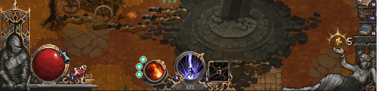 然而实际游玩起来,我还挺吃这套的,左下角的血条设计较为直观,中间也清晰的展示出三项技能的使用情况,而最右边是我成功攒下的钱~