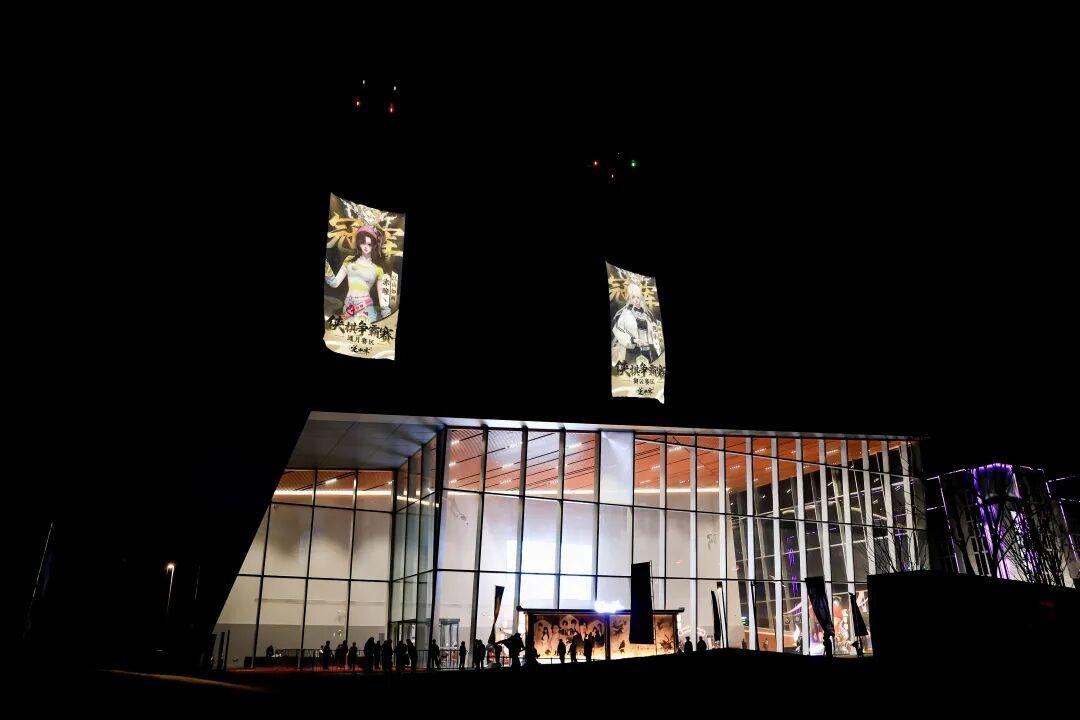 当晚,当冠军选手诞生时,游戏官方还出动两架大型无人机,拉起映着冠军头像的巨大屏幕,让他们直接「上天」。