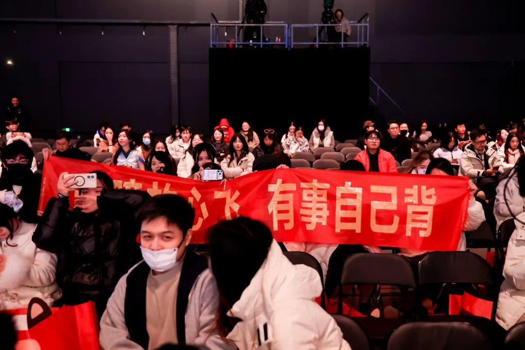 是的,作为棋类比赛,现场画面或许并不像动作游戏那么激烈,但这不代表比赛就不好看:不少人都高高抬着头,带着些许严肃的表情,若有所思地看着比赛。当选手打出好的表现时,解说也同样异常激动。我甚至看到有玩家拉起了选手的长条横幅,表现得极其兴奋。