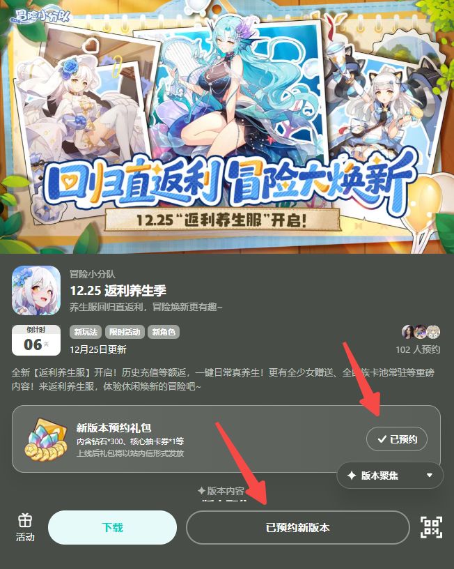 冒险小分队丨12.25 返利养生季🎁第二步:点击下方预约按钮,即可完成预约