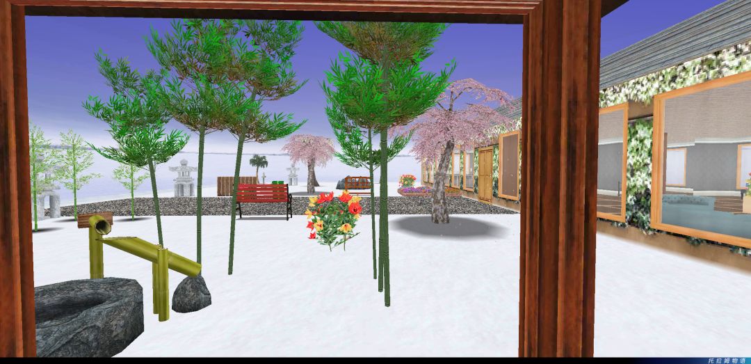 因为给室内分配的装饰品数量比较多,所以室外需要多布一些层次,这样就不会显得空旷,会比较充实。